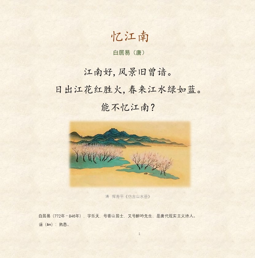 古词古画40首 《古词古画40首》分“注音版”和“无注音版”,目前只有纸版书。注音版对古词标注了拼音。无注音版只对难字在注释中标注了拼音。 《古词古画40首》注音版内页,点击图片可放大。点击链接购买 《古词古画40首》无注音版内页,点击图片可放大。点击链接购买 Like Loading...