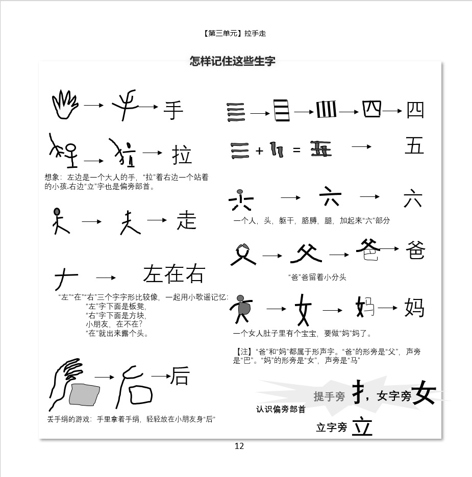 识字歌谣黑白版 《慢兔识字歌谣》一套6册共60个单元,近700个汉字。可作为幼儿识字的零基础教材。本书面向3岁以上儿童,以有中文听说基础的儿童为最佳。 第一本,第三单元 内页,可点击放大。点击链接购买 第二本,第二十四单元 内页,点击图片可放大。点击链接购买 第三本,第四十三单元内页,点击图片可放大。点击链接购买 Like Loading...