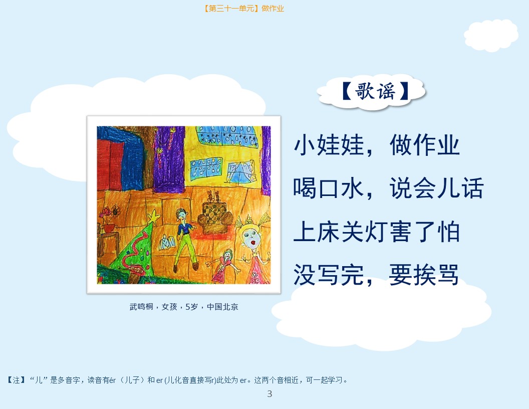 识字歌谣彩色版 《慢兔识字歌谣》一套6册共60个单元,近700个汉字。可作为幼儿识字的零基础教材。本书面向3岁以上儿童,以有中文听说基础的儿童为最佳。 第一册,第三单元 内页,可点击放大。点击链接购买 第二册,第十六单元 内页,可点击放大。点击链接购买 第三册,第二十四单元 内页,点击图片可放大。点击链接购买 第四册, 第三十一内页,点击图片可放大。点击链接购买 第五册,第四十三单元内页,点击图片可放大。点击链接购买 第六册,第五十四单元 内页,点击图片可放大。点击链接购买 Like Loading...